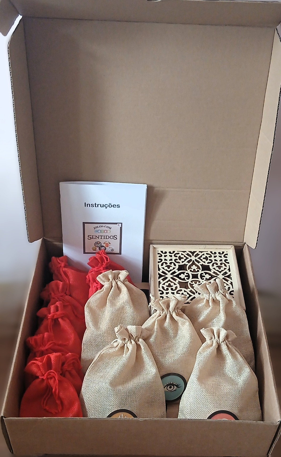 Caixa Completa Todos os jogos sensoriais: Visão; Olfato; Audição; Paladar e Tato com o tabuleiro 75,00 € 100,00 € Ver detalhes